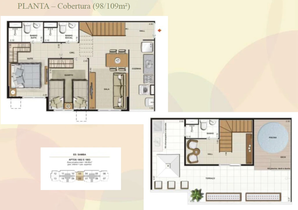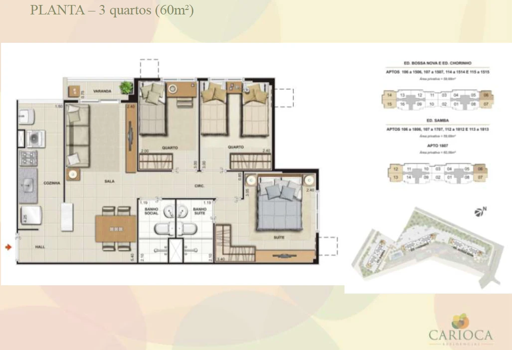 Apartamentos de 3 quartos com suíte área privativa de 60,00m2